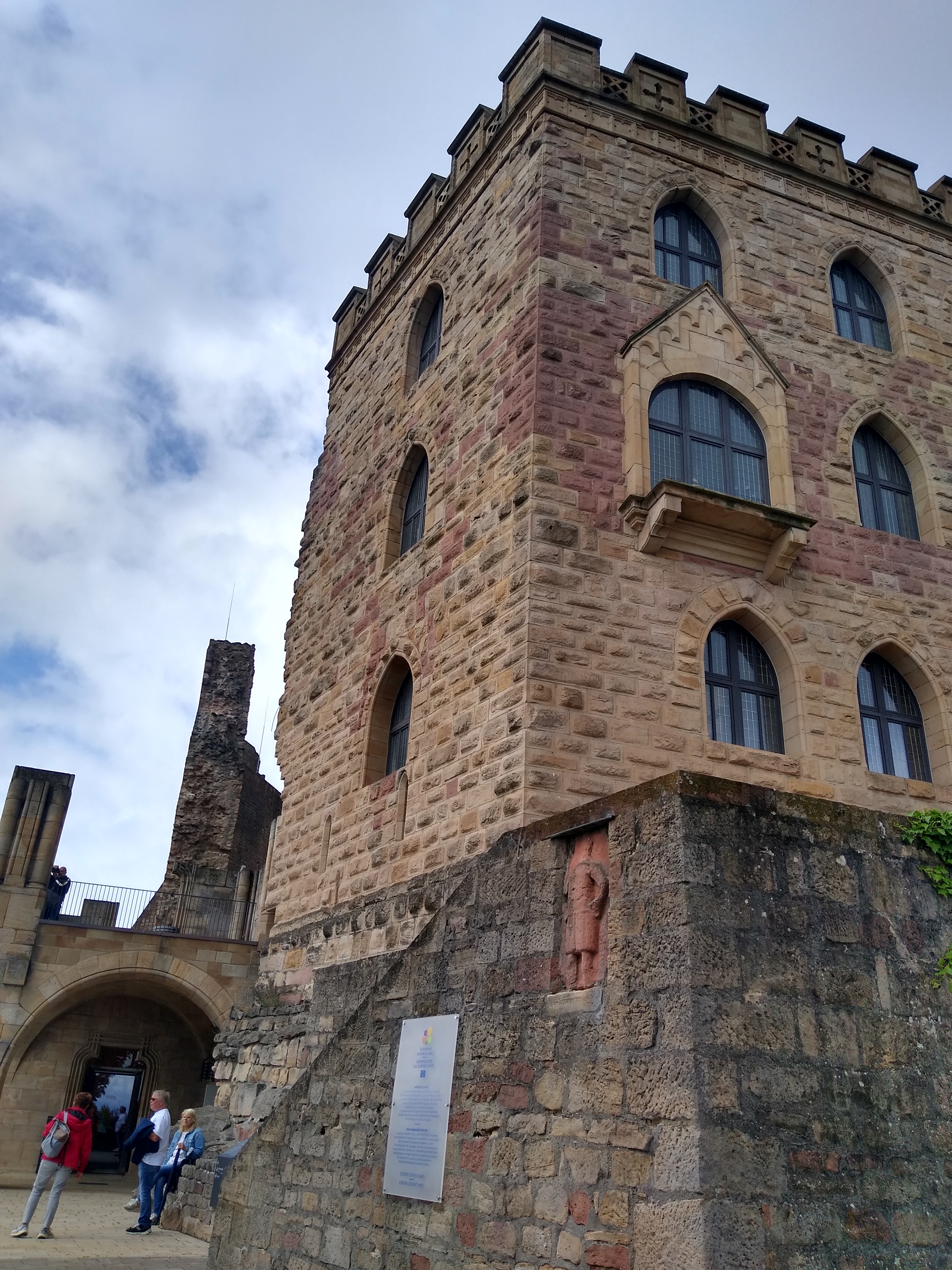 Nach dem steilen Anstieg zu der früheren mittelalterlichen Kästenburg konnten die Teilnehmenden bei einer Führung interessante Details zur Geschichte der Anlage und des Hambacher Festes erfahren.