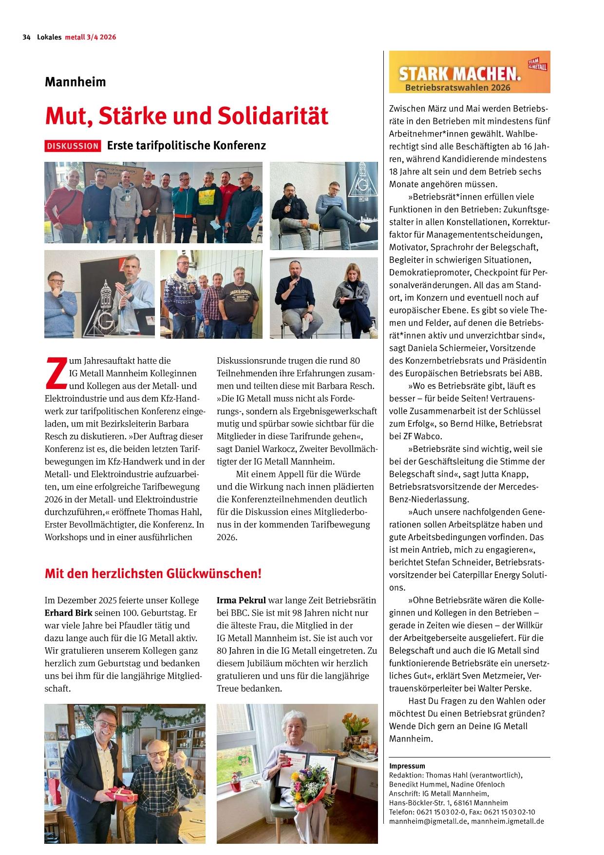 Hier könnt ihr euch die aktuelle Lokalseite des Mitgliedermagazins "metall" ansehen.